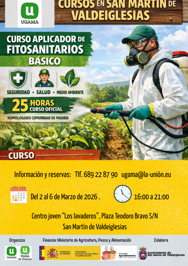 Curso dirigido a ganaderos/as y agricultores/as de la Comunidad de Madrid interesados en obtener la cualificación requerida para el empleo de productos fitosanitarios.